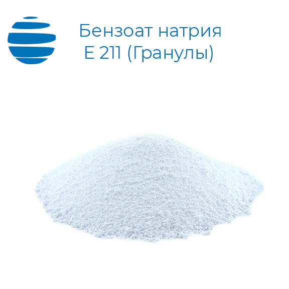 Бензоат натрия (бензойнокислый натрий, Е211) имеет формулу C7H5O2Na. Он наиболее широко используется в кислых продуктах, таких как заправки для салатов (подобно уксусной кислоте), безалкогольных напитках, джемах и фруктовых соках, солёных огурцах, приправах и начинок из замороженного йогурта, а также в мясных и рыбных продуктах, маргарине, майонезе и кетчупе. Оказывает сильное угнетающее действие на дрожжи и плесневые грибы, включая афлатоксинообразующие, подавляет в клетках активность ферментов, ответственных за окислительно-восстановительные реакции, а также ферментов, расщепляющих жиры и крахмал.