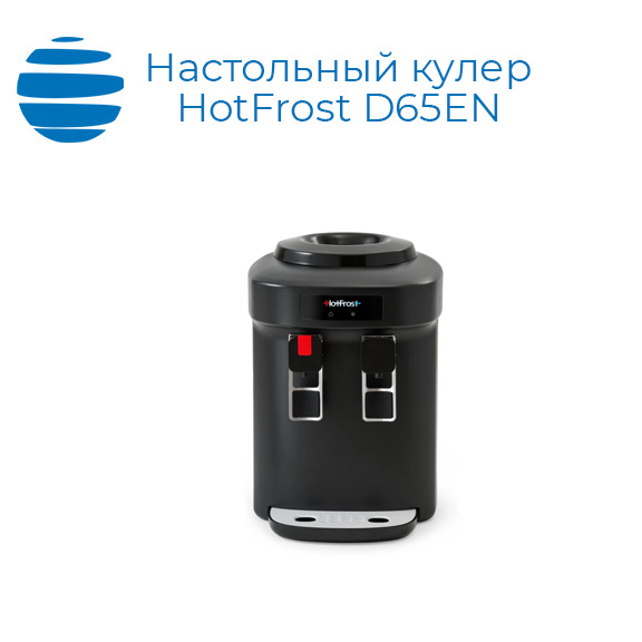 Стильный обтекаемый дизайн с черной расцветкой корпуса. Прибор обладает двумя емкостями для горячей и холодной воды на 0.8 и 0.6 л. Нагрев воды осуществляется до температуры 90 градусов, а охлаждение до 10 градусов. Кулер дополнен системой защиты от детей и съемным лотком для сбора капель. Модель HotFrost D65EN обладает электронным типом охлаждения. Работа осуществляется при мощности 420 Вт при нагреве и 80 Вт при охлаждении. Предусматривается наличие простого механизма управления в виде крана с нажимом кружкой, а также небольшого шкафчика.